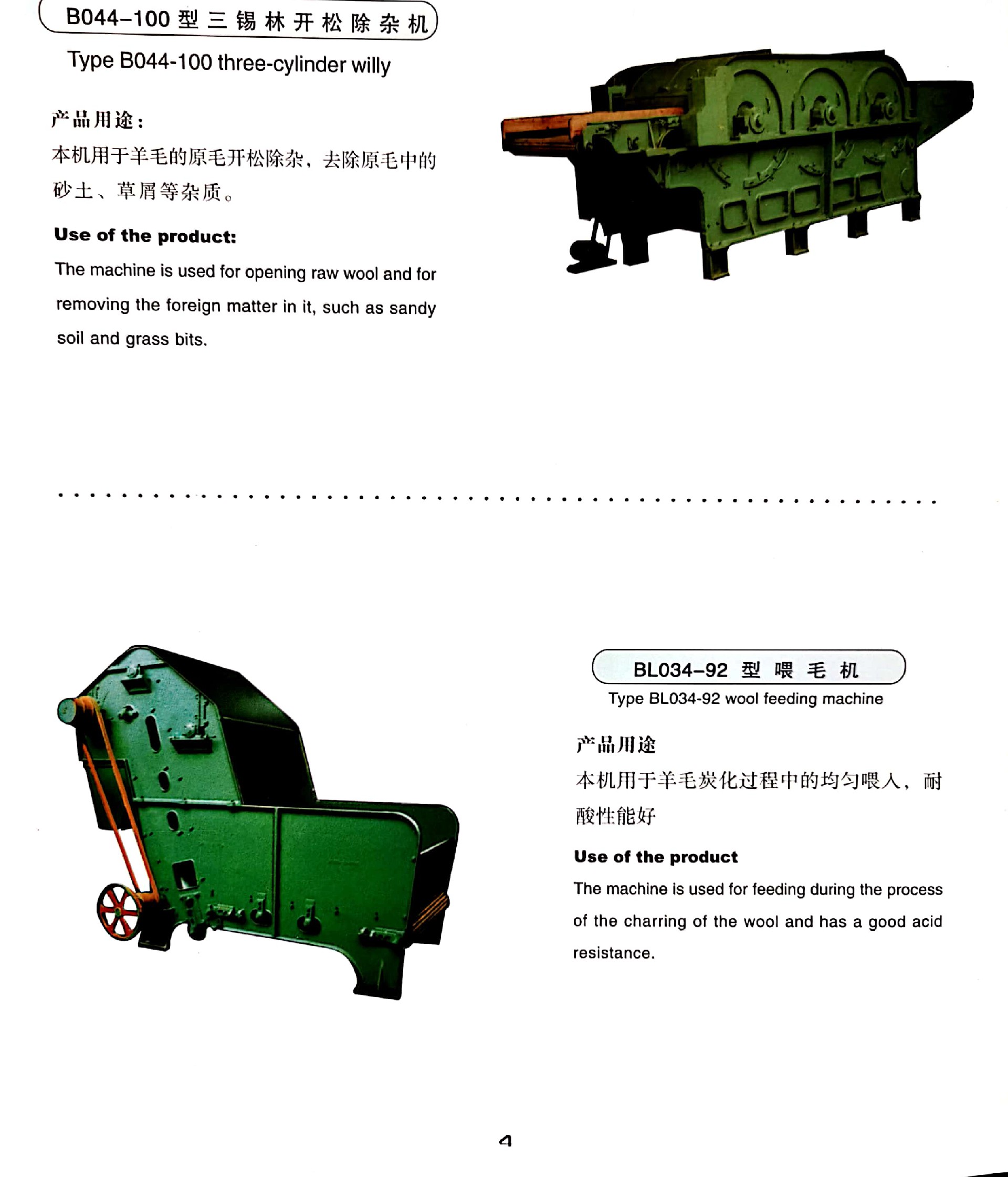 在應(yīng)用領(lǐng)域方面,B044 - 100 型三錫林開松除雜機(jī)廣泛適用于各類毛紡企業(yè)。無論是大規(guī)模的工業(yè)化毛紡廠,需要處理大量原毛以滿足連續(xù)化生產(chǎn)的需求,還是中小型的毛紡企業(yè),追求高效且精準(zhǔn)的原毛預(yù)處理效果,該設(shè)備都能完美適配。它是毛紡生產(chǎn)流程中不可或缺的重要一環(huán),為整個(gè)毛紡產(chǎn)業(yè)鏈從原料端開始把控質(zhì)量,助力企業(yè)生產(chǎn)出高品質(zhì)、高附加值的羊毛制品,在提升企業(yè)經(jīng)濟(jì)效益和市場競爭力方面發(fā)揮著不可替代的作用。